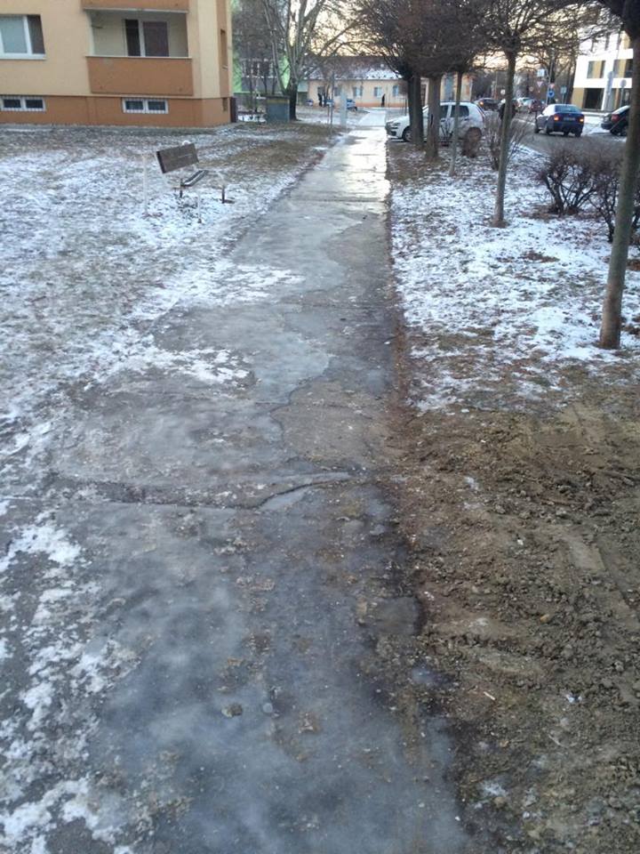 Podľa vyjadrenia z mestského úradu na chodníku je hrubá vrstva ľadu z dôvodu poruchy vodovodu, ktorá je už odstránená. Ešte dnes by mal byť chodník posypaný hrubou vrstvou posypového materiálu a zajtra by ho mali očistiť pracovníci mestského podniku Area.