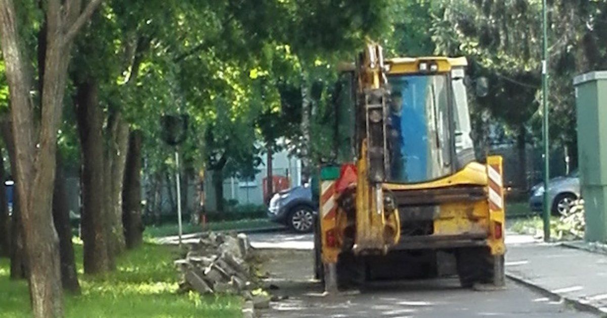 Rozširovanie cesty na Gazdovskom rade pri materskej škole.