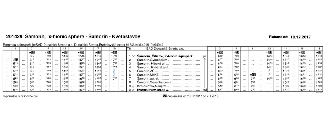 Ďalší autobus odchádza už z x-bionic sphere o 6.10 h, 7.10 h a potom začne premávať až od 14.45 h v hodinových intervaloch do 17. 45 h. Tento posledný spoj však skončí na autobusovej stanici.