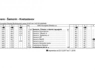 Ten k 10. decembru zmenil cestovný poriadok. V rámci jeho úpravy pribudol spoj, ktorý odchádza z Hlbokej ul. už o 5.15 h. Cestujúci tak môžu prestúpiť v Kvetoslavove na vlak s odchodom o 5.46. hod.