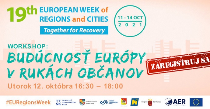 V poradí 19. ročník #EURegionsWeek je organizovaný Európskou komisiou spoločne s Výborom regiónov, pričom ide o najväčšie podujatie venované regionálnemu rozvoju a výmene skúseností a kontaktov medzi regiónmi z celej Európy. Uskutoční sa online formou v dňoch 11. až 14. októbra a ponúkne viac ako 500 rôznych aktivít súvisiacich s politikou súdržnosti Európskej únie. Okrem témy občianskej angažovanosti bude dôraz kladený predovšetkým na zelenú a digitálnu transformáciu.