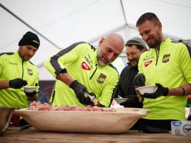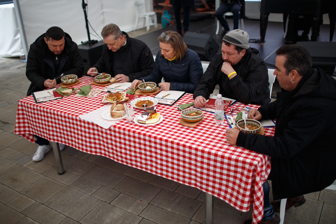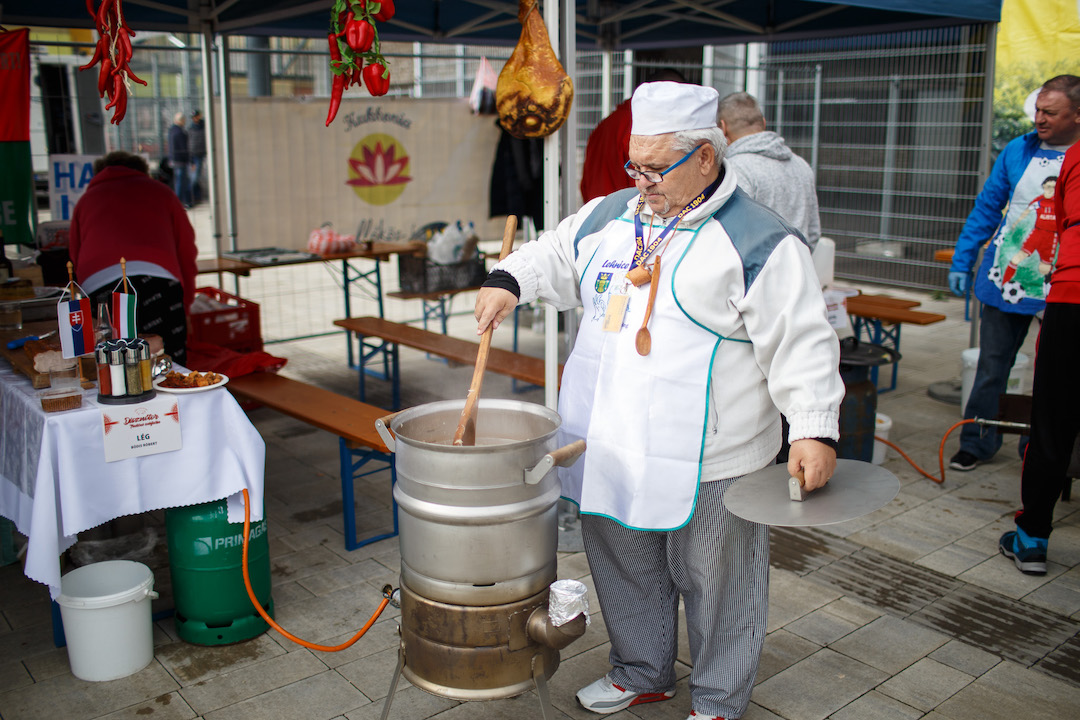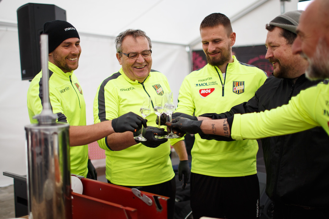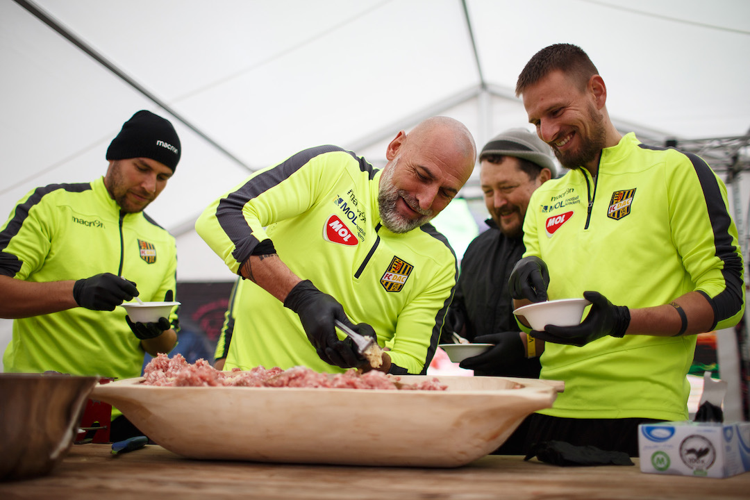 „Maďarská kuchyňa nemá páru”, poznamenal Koppány, ktorý sa práve vrátil z Ameriky a naplno si užíval miestne domáce chute. Plnenia klobás sa šikovne chopili mládežnícki tréneri z MOL Arény, medzi ktorými vynikali najmä György Lépes a Michal Kuruc.