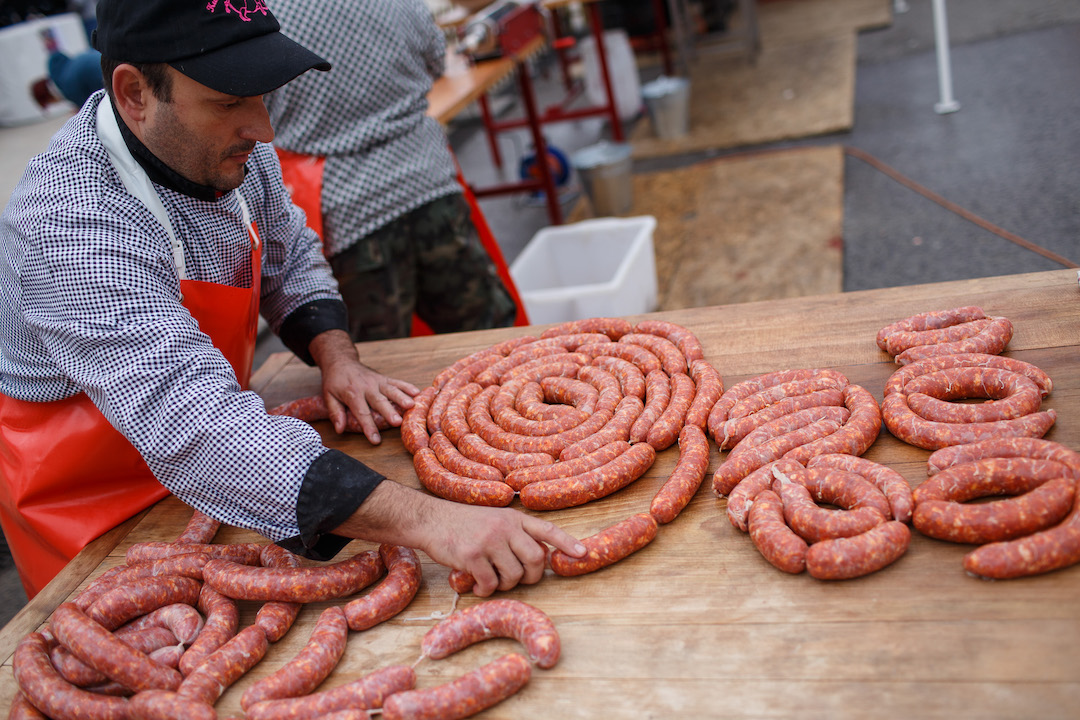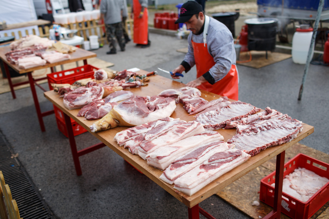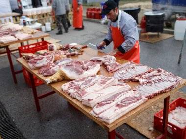 Počas dňa bolo možné si na mieste kúpiť čerstvé mäso či rôzne údené výrobky. Doslova expresne rýchlo sa míňali poctivé domáce a mimoriadne delikátne oškvarky. Pred výstavnou kuchyňou sa prakticky nepretržite kľukatili dlhé rady ľudí, ktorí nedokázali odolať pečenej klobáse, pečenej krvi či slanine.