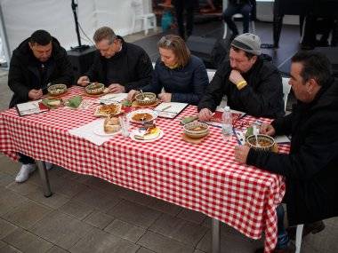 Organizátori privítali hostí výdatnými raňajkami a obedom. Na jedálnom lístku nechýbali také neodolateľné dobroty ako čerstvo pečená klobása, jaternica, bravčový bok, pečená krv, oškvarky a božská zabíjačková kapusta.