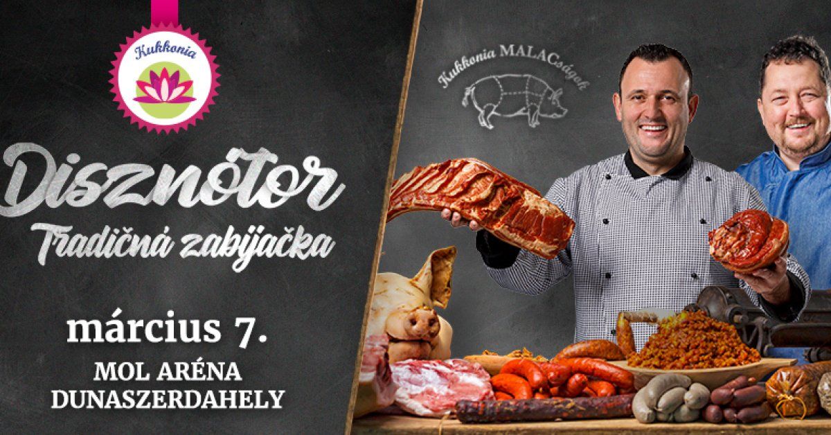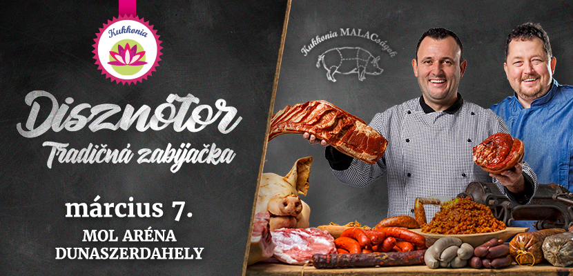 Podľa starých zvykov sa počas zabíjačky vždy zišla celá ulica, ľudia si navzájom pomohli, neskôr hodovali a bavili sa. Oživme spoločne naše minulé tradície! Zabíjačka Kukkónia je pre všetkých návštevníkov aj pozvaním na výdatné raňajky a obed. V menu sú také neodolateľné dobroty ako čerstvo pečená klobása, jaternice, pečienka, pečená krv, oškvarky a božská zabíjačková kapusta. Počas dňa bude v ponuke aj čerstvé mäso, rôzne zabíjačkové špeciality, a na mieste nájdete tiež údené pokrmy. V programe bude aj tento rok súťaž v plnení klobás či zápolenie vo varení. O zábavu pre najmenších sa postará speváčka a herečka Réka Mihály so svojim divadelným predstavením Masni a Pocó. K dobrému obedu vám zahrá hudobná skupina Pósfa. Hviezdou podujatia bude speváčka Vera Tóth, víťazka talentovej show Megasztár.