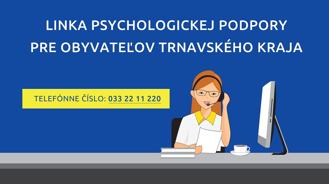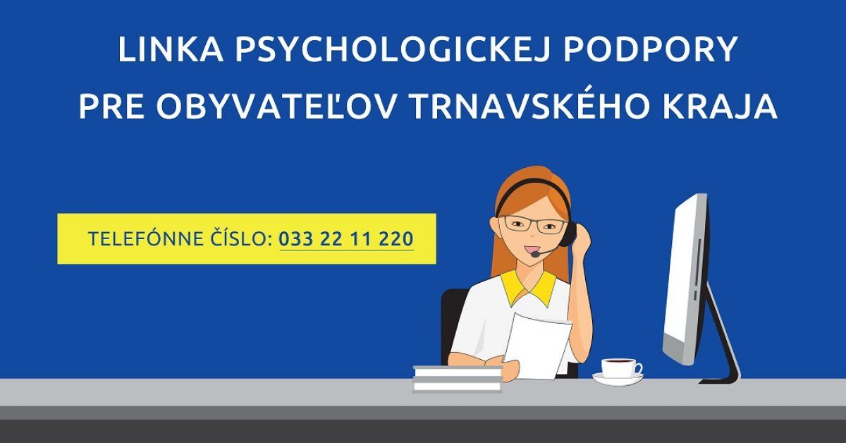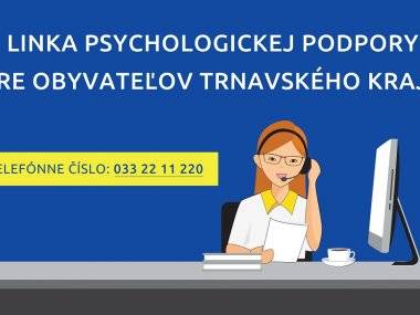 V rámci radu opatrení v súvislosti so šírením ochorenia COVID-19, trnavská župa zaviedla od začiatku apríla pre svojich obyvateľov novú službu, linku psychologickej podpory. Prostredníctvom tejto linky je pre ľudí k dispozícii celkom 56 psychológov a ďalších odborníkov, ktorí ľuďom v ťažkej životnej situácii, v duševnom vypätí, alebo v strese zo vzniknutej krízovej situácie, poskytnú odbornú psychologickú podporu, povzbudenie a cenné rady.