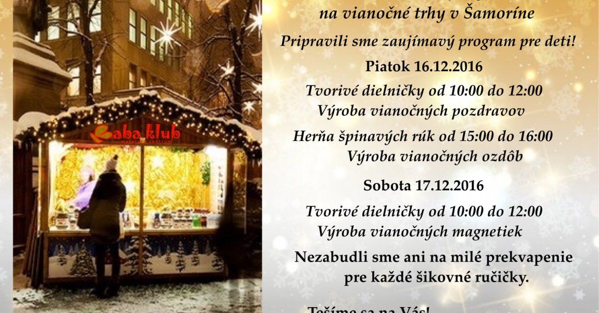 Materské centrum Baba klub vás srdečne pozýva na vianočné trhy, kde je pripravený pre vaše deti zaujímavý program.