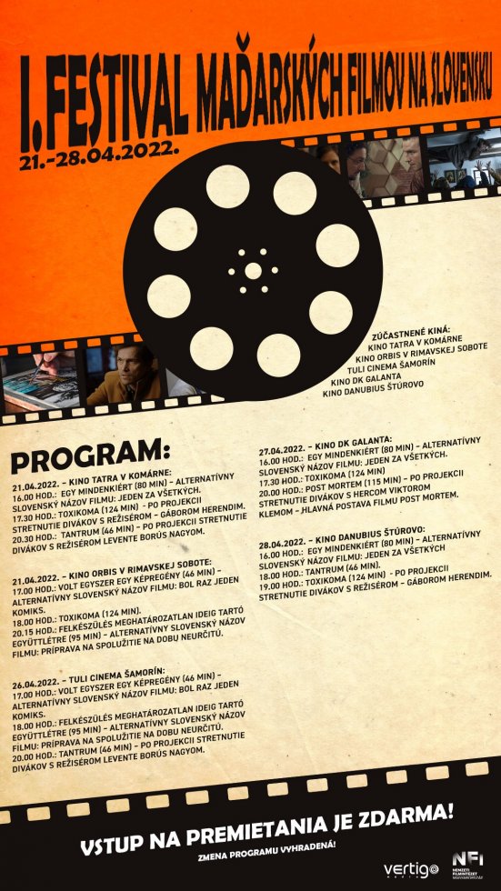 Pozývame vás na historicky 1. festival maďarských filmov na Slovensku, na ktorom si budete môcť pozrieť viaceré filmové tituly z maďarskej produkcie so slovenskými titulkami.