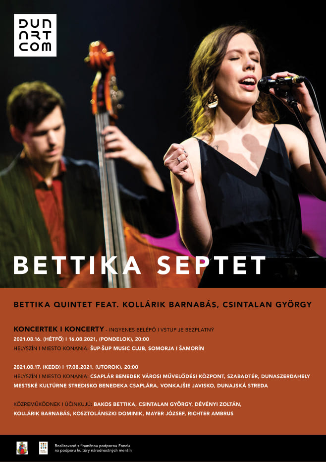Koncert BETTIKA SEPTETDátum a čas:16.8.2021, 20:00 - 22:00Miesto:ŠUP-ŠUP MUSIC CLUBVstupné:bezplatnéZdieľať: