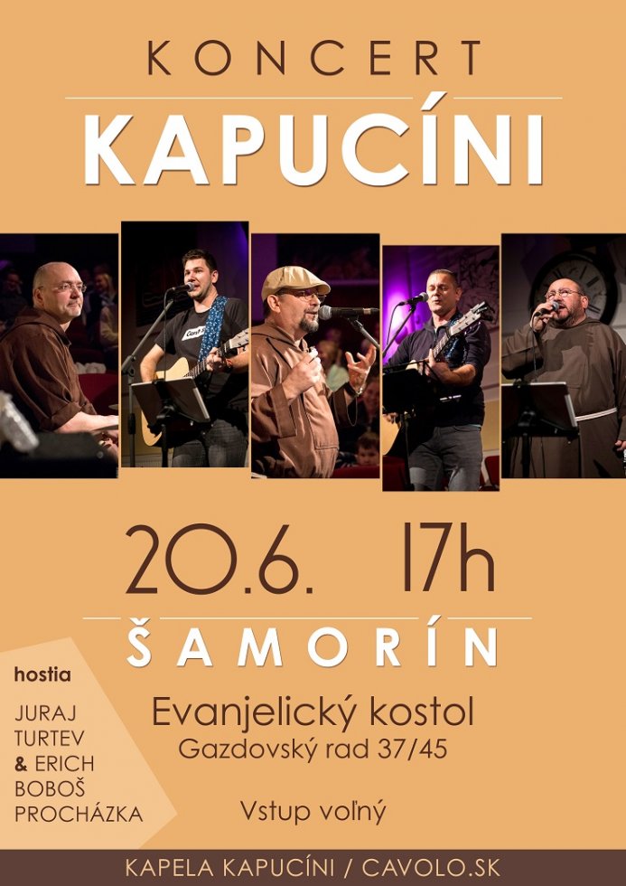 Koncert KapucíniDátum a čas:20.6.2021, 17:00 - 23:00Miesto:Evanjelický kostolKoncert v evanjelickom kostole v nedeľu, 20.6.2021 o 17.00.Zdieľať: