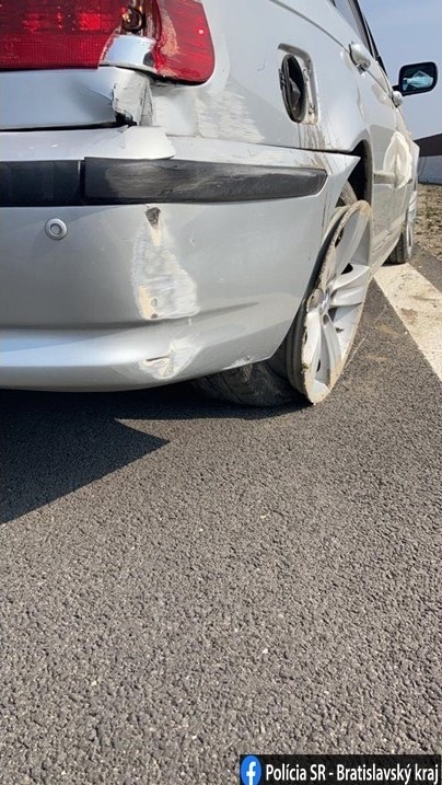 Svoju jazdu vodič ukončil až po prestrelení pneumatík a to nárazom do stredových zvodidiel na diaľnici D4 pri výjazde na Rovinku a Podunajské Biskupice.