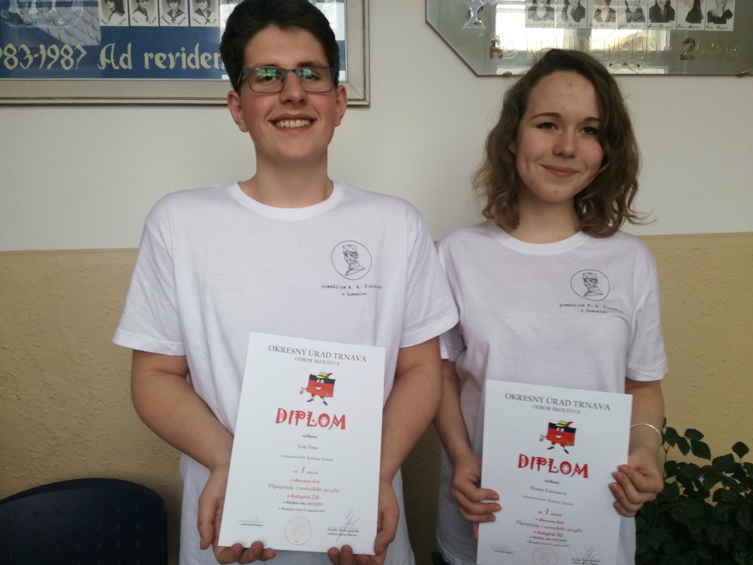 Jazyky na Gymnáziu M.R.Štefánika sú už dlhoročne na vysokej úrovni, o čom svedčí aj to, že naši žiaci dosahujú každoročne vynikajúce výsledky na krajských i celoštátnych kolách olympiád v anglickom i nemeckom jazyku.
