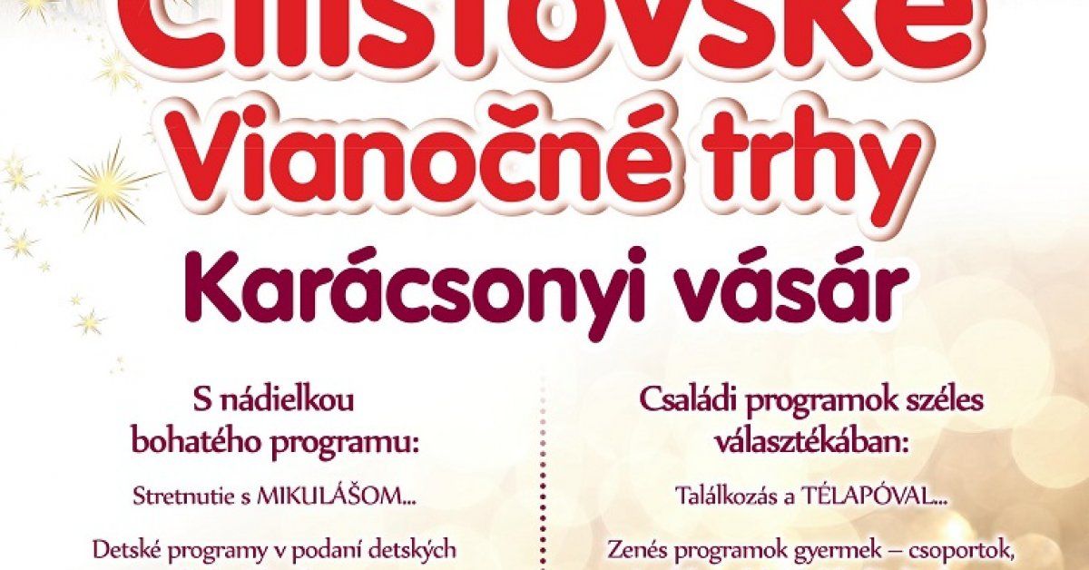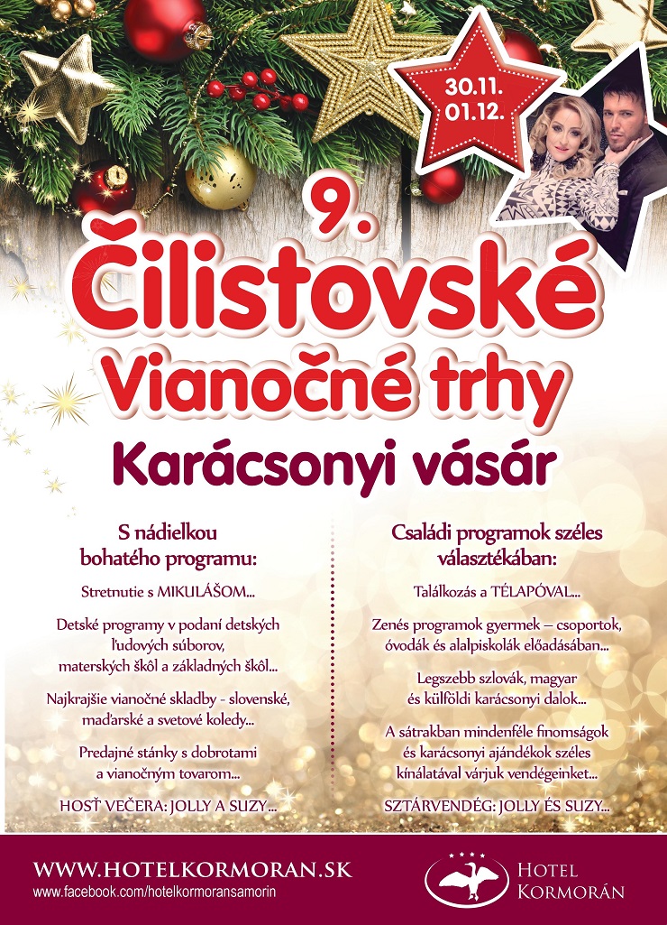 V poradí už deviate Čilistovské Vianočné trhy sa uskutočnia 30.11. až 1.12. 2018 pri Hoteli Kormorán. V sobotu 1. decembra vás zo Šamorína do Čilistova a späť odvezie zadarmo autobus. Program po kliknutí na čítaj ďalej.