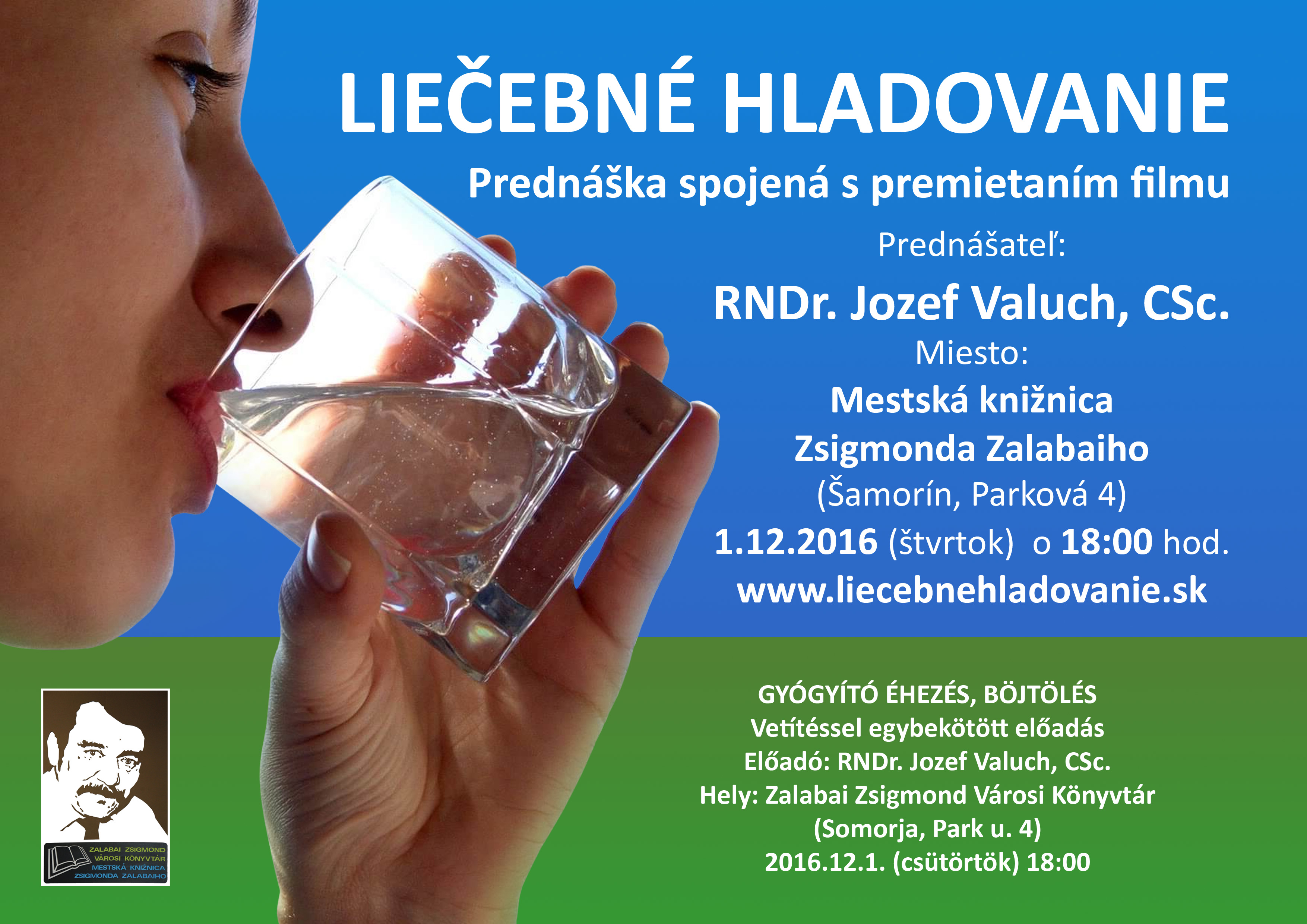 Vo štvrtok 1. decembra sa v šamorínskej mestskej knižnici uskutoční zaujímavá prednáška s názvom Liečebné hladovania.