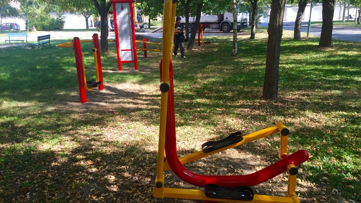 Cvičebné stroje stoja pri detských ihriskách na Gazdovskom rade (vedľa škôlky) a pri ihrisku na Mestskom majeri. Stroje by mali byť funkčné ešte dnes.