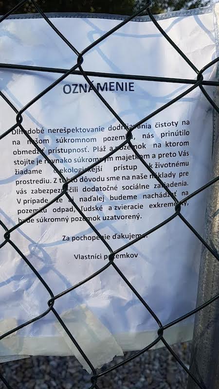 Prikladám fotky oznámení umiestnených na oplotení. Na žiadnom z nich nie je oficiálna pečiatka miestneho úradu. Už stavba veľkých rodinných domov v záhradkárskej oblasti okolo jazera po minulé roky nadobúda obrovské dimenzie. Teraz bude povolené kúpanie len pre nudistov?