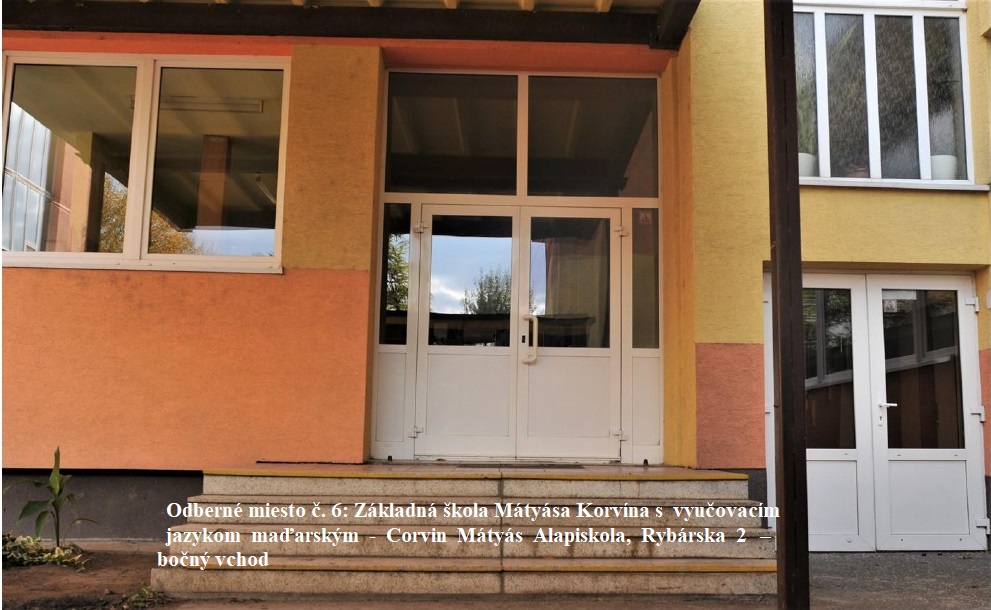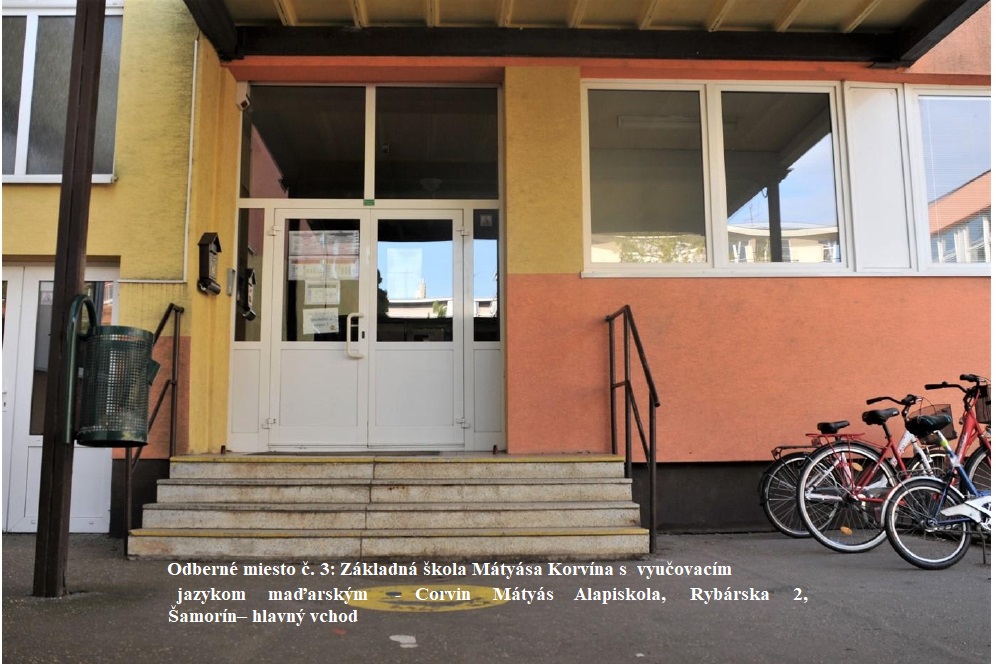 odberné miesto č. 3: Základná škola Mátyása Korvína, Rybárska 2., hlavný vchod,