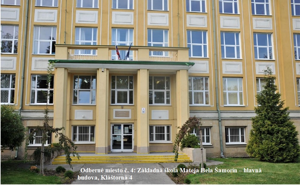 odberné miesto č. 4: Základná škola Mateja Bela, Kláštorná 4., hlavný vchod,