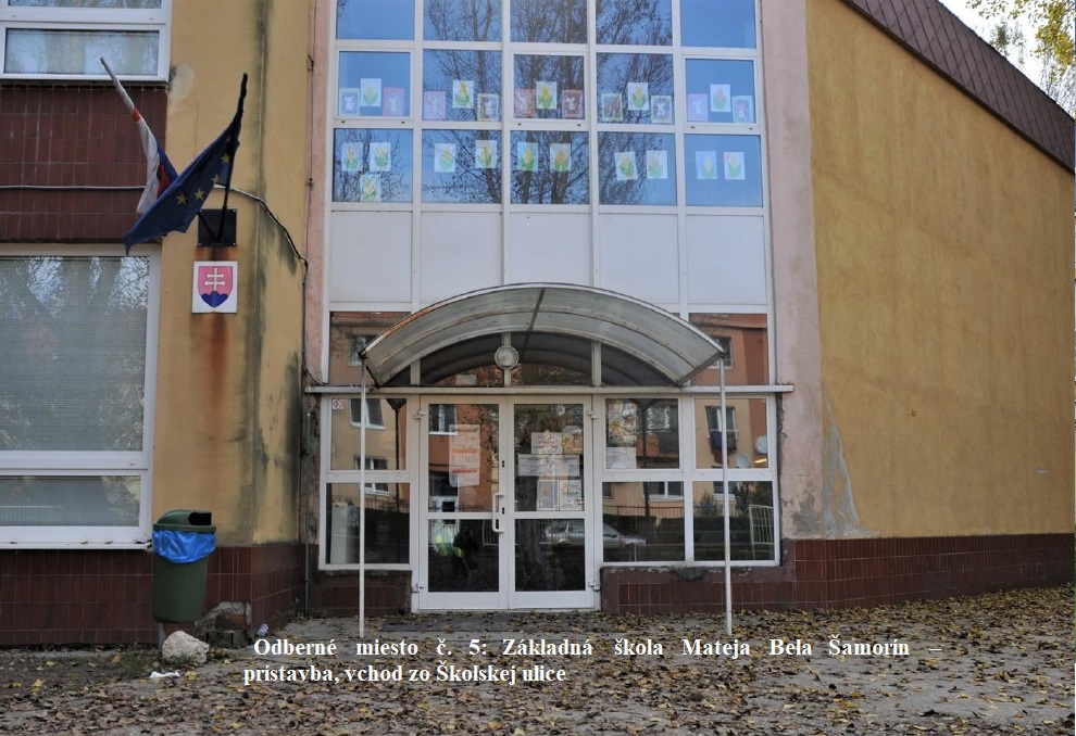 odberné miesto č. 5: prístavba Základnej školy Mateja Bela, vchod zo Školskej ulice,
