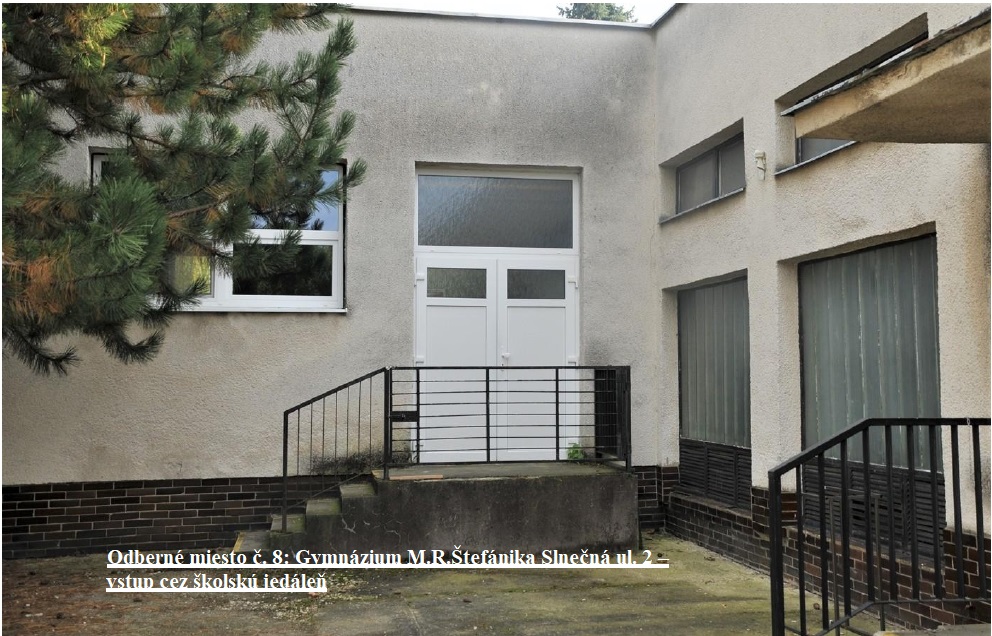 odberné miesto č. 8: Gymnázium M. R. Štefánika, Slnečná 2., vstup cez školskú jedáleň,