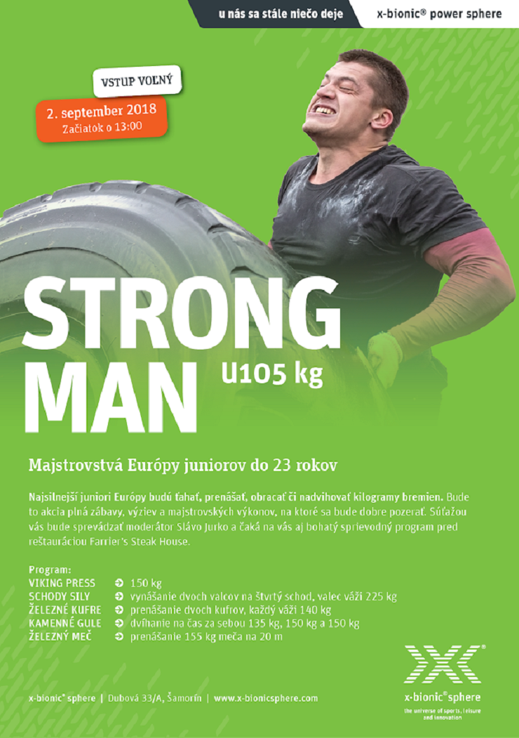V komplexe x-bionic sphere sa v nedeľu 2. septembra uskutoční európsky šampionát juniorov do 23 rokov STRONG MAN U105 kg.