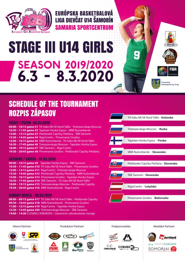 radi by sme Vám pripomenuli, že už zajtra začína medzinárodný basketbalový turnaj dievčat Európskej ligy EGBL, ktorý sa bude konať v športovej hale Športcentrum Samaria v dňoch 6.-8.3.2020.