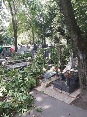 Zamestnanci mestského podniku AREA upratujú v cintoríne po včerajšej búrke....aj keď je to ich práca, patrí im veľká vďaka, ako aj hasičom ktorí boli kvôli popadaným konárom privolaný večer a napriek nepretržitým výjazdom a silnému dažďu došli v priebehu pár minút a s dobrou náladou pomohli...VĎAKA!