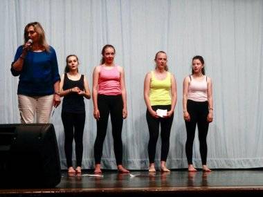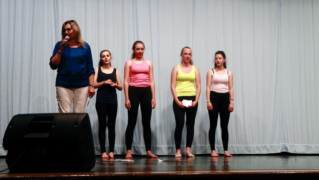 Riaditeľka školy Irena Szűcsová a tohtoročné absolventky tanečného odboru Natália Pethőová, Petra Firbasová, Dominika Valacsaiová a Klaudia Koleková.