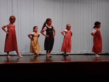 Dievčatá a dvoch chlapcov pripravila na tanečnú ukážku obľúbená pani učiteľka Anna Prachárová.