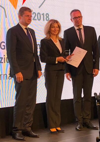 Gymnázium získalo 1. miesto a cenu odovzdal do rúk riaditeľky minister hospodárstva Peter Žiga.