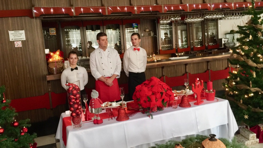 Vianočnú výstavu pripravili žiaci 5. ročníka hotelovej akadémie v rámci praktickej časti odbornej zložky maturitnej skúšky a žiaci nižších ročníkov, vrátane žiakov ubytovaných na školskom internáte.