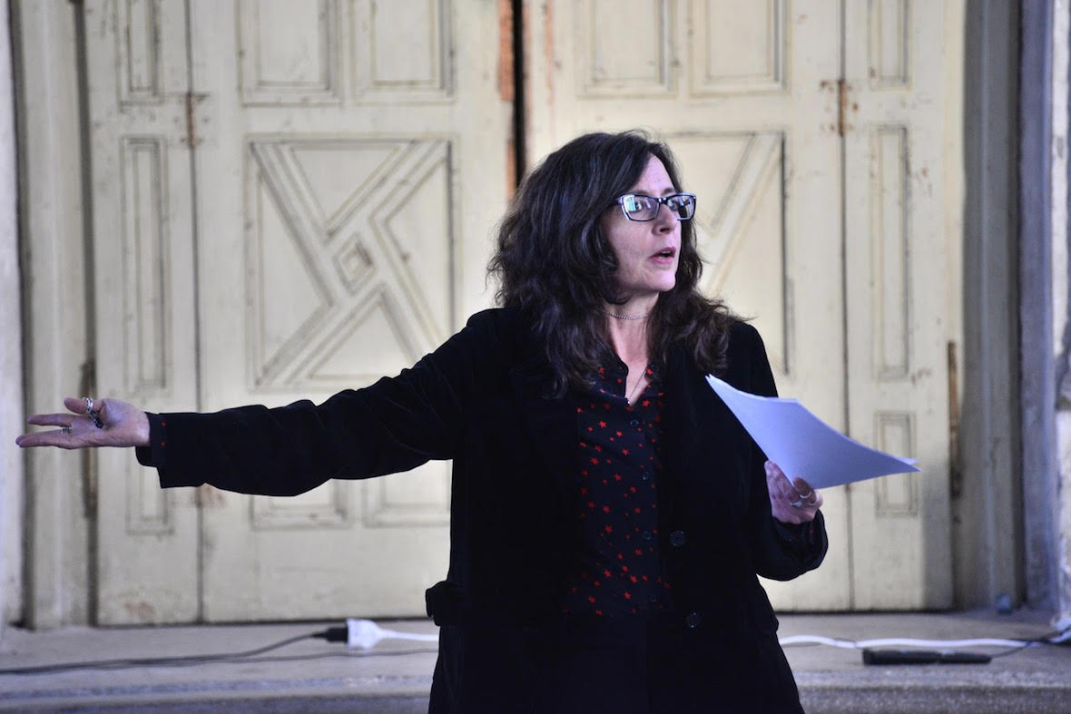 ,,Slnečné lúče, ktoré práve teraz osvecujú steny synagógy, prichádzali sem z nášho slnka osem minút. Svetlo z projektorov reprodukuje svetlo, ktoré som zachytila na film – na materiál citlivý na svetlo – tu v synagóge ešte v januári. Tieto steny pritom absorbujú svetlo a zvuky diania už viac ako 100 rokov. A to sú veci, ktoré si, dúfam, vďaka môjmu dielu uvedomíme. Pýtam sa vás, že kým sa pozeráte na toto dielo, či si všímate prirodzené svetlo prichádzajúce cez okná, ako sa mení a ako sa zmiešava so svetlami projektorov. Niekedy svetlo prichádzajúce cez okná je skoro rovnako dôležité, ako samotná projekcia; niekedy sú tieto dve svetlá nerozoznateľné. A ako sa stmieva, projekcia mizne,” povedala k svojmu dielu Sheri Wills.
