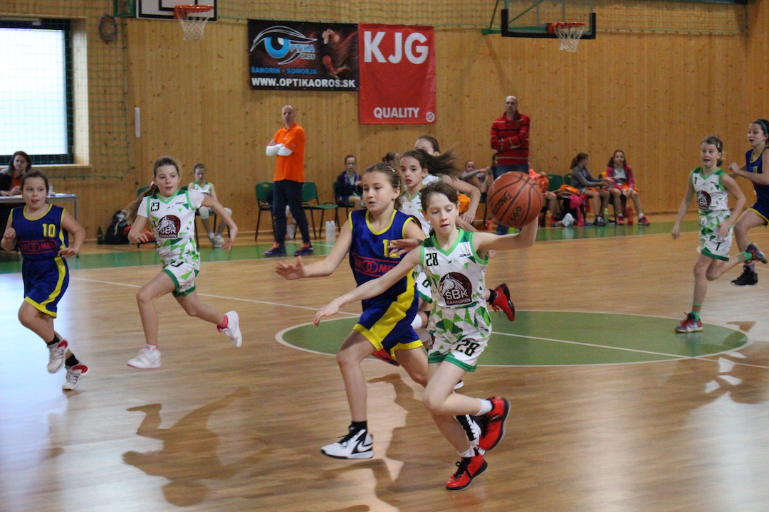 Nastúpili s rešpektom, lebo každý súper vie občas prekvapiť. Ako sa však ukázalo už v úvode zápasu, naše dievčatá mali opäť navrch. V prvej štvrtine sa hral pekný kombinačný basketbal v podaní Lenky Jančokovej (10 b) a Anky Lelkes (6 b). Druhá štvrtina sa niesla v znamení rýchlych protiútokov Tildy Slamovej (16 b). V druhej polovici zápasu, keď bolo jasné vedenie šamorínskeho družstva, dostala šancu sa predviesť na ihrisku každá hráčka družstva.