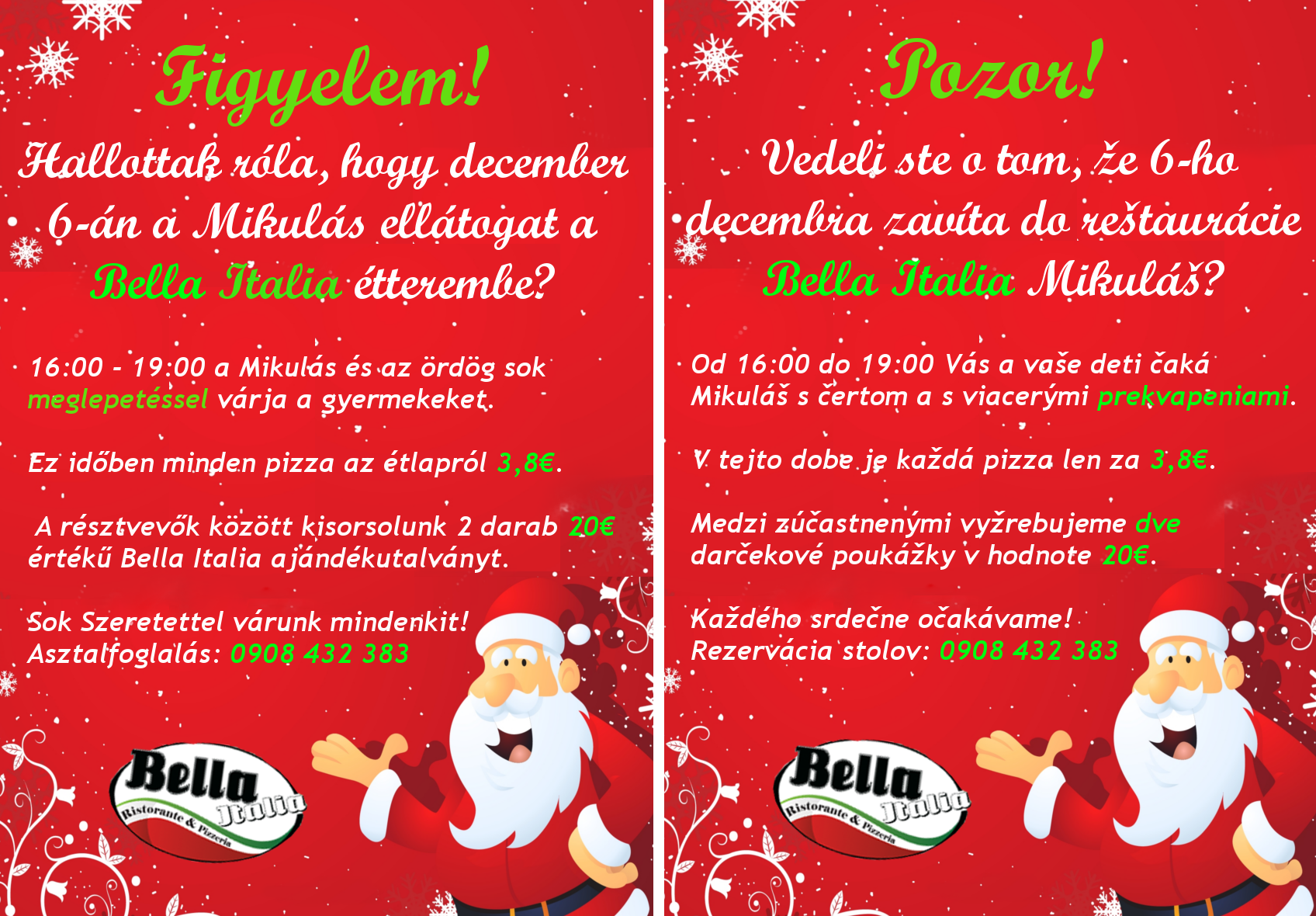 Vyhrajte Mikulášsku večeru pred dvoch v reštaurácii Bella Italia.