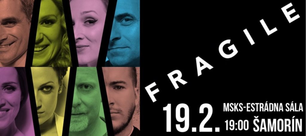 19.februára 2018 od 19:00h v MsKS Šamorín sa uskutoční koncert slovenskej vokálnej skupiny FRAGILE zložená z populárnych osobností, známych z rôznych televíznych seriálov, divadelných, muzikálových produkcií či TV šou.