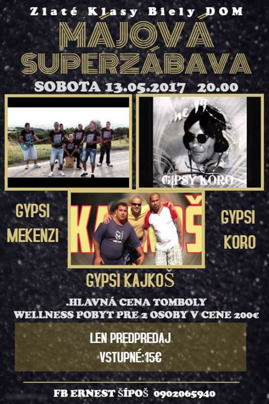 Len 15€ za tri super skupiny ktoré sa nevidia každý týždeň Gipsy Kajkoš, Gipsy Mekenzi a Gipsy Koro(žijúca legenda) tak nepremeškajte túto zábavu. Posledné lístky v predpredaji!