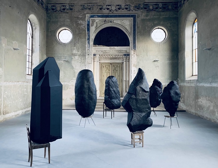 Ich veľkosť taktiež vychádza z klasickej sochárskej mierky. S tým súvisí i jednotná čierna farba všetkých objektov. „Chcel som dostať preč celú plasticitu a ponechať ich len v základnom obraze, takmer až v obrysovom,“ hovorí Kvetan. Významnú úlohu v tomto podľa neho zohráva i prirodzené osvetlenie priestoru synagógy bez umelého nasvietenia. „Najlepšie vyzerajú v pološere, keď zapadá slnko, má to takú zvláštnu atmosféru.“