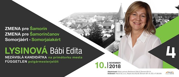 Ja osobne – teraz však nie ako kandidátka na primátorku, ale ako rodená Šamorínčanka, prajem svojmu mestu, aby malo v nedeľu ráno takého primátora, ktorý bude oddane slúžiť všetkým jeho obyvateľom, ktorý bude  rozumieť jazyku Šamorínčanov (a tým nemám na mysli len schopnosť rozumieť slovenčine aj maďarčine), ktorý sa nebude báť postaviť sa pred ľudí v akejkoľvek situácii, lebo reprezentovať mesto treba nielen v budove úradu. Jeho osoba nech je akceptovateľná pre väčšinu Šamorínčanov a aj pre – teraz už s veľkou pravdepodobnosťou - rôznofarebné nové zastupiteľstvo . Len takto bude naše mesto domovom nás všetkých.