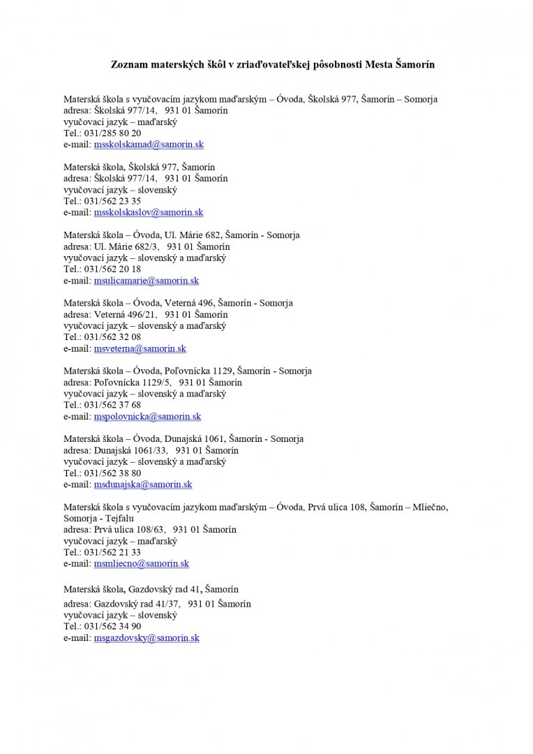 Pod našim príspevkom prinášame oznam Školského úradu v Šamoríne a zoznam materských škôl v zriaďovateľskej pôsobnosti mesta Šamorín.