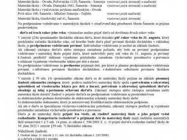 Ďalšie informácie poskytnú záujemcom jednotlivé materské školy.