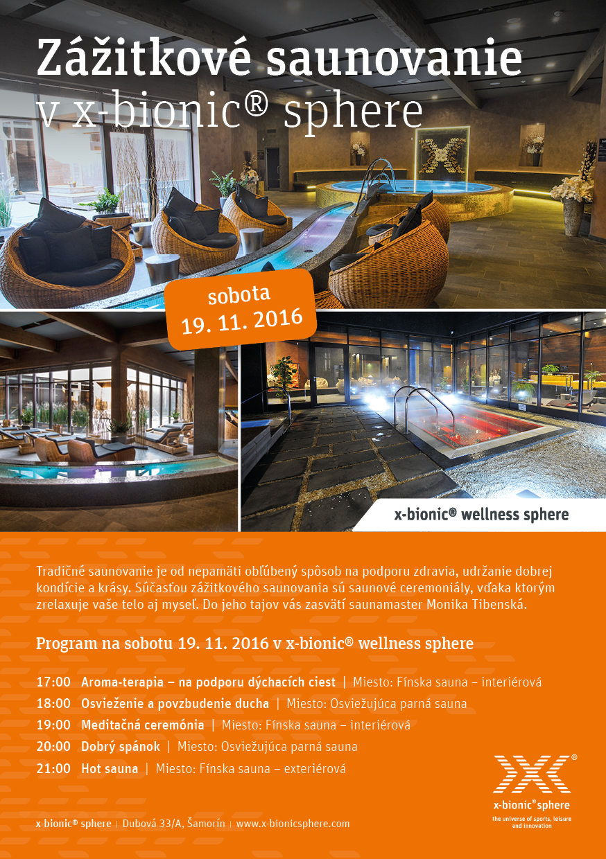 Program na sobotu 19. novembra 2016 vo WELLNESS SPHERE