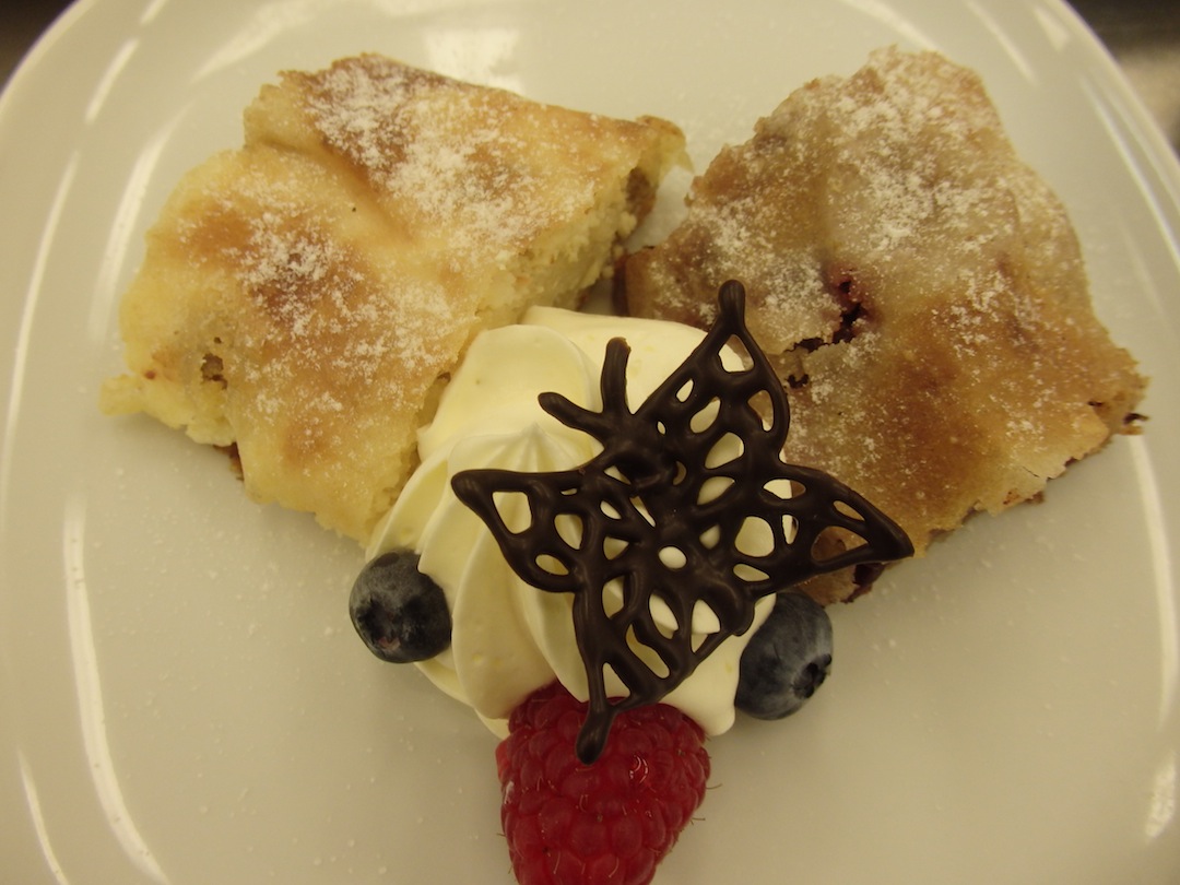 Cukrári pod vedením svojej majsterky odbornej výchovy ponúkali klasický ťahaný čerešňový a tvarohový závin s vanilkovou penou. Počas večera sa prezentovali aj ďalšími pripravenými cukrárskymi výrobkami, ako Pavlovovej tortičkami, jahodami v čokoláde či klasickým štedrákom.